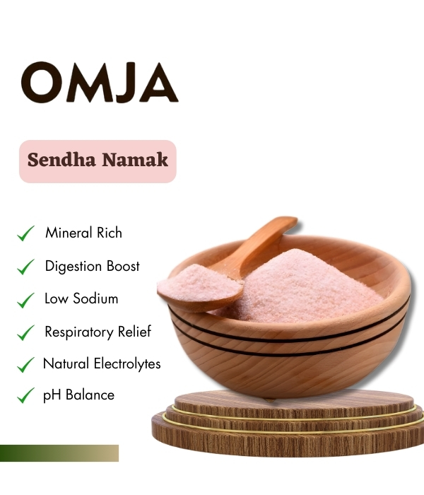 Experience the purity and health benefits of Omja India’s Sendha Namak– a natural choice for a balanced and wholesome lifestyle!